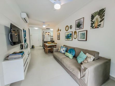 - 2 dormitórios, sendo 1 suíte - Living com dois ambientes - Cozinha equipada - Banheiro social - Área de serviço - Varanda envidraçada com vista para o mar - Ambientes climatizados Diferenciais e Lazer do Condomínio: Piscina adulto Salão de Jogos Salão de festas Churrasqueira Academia Quadra de Tênis Área verde/Jardim Sanitários Portaria Serviço de praia. À Disponibilidade e Valores dos Imóveis anunciados podem sofrer alterações a qualquer momento, sem aviso prévio.