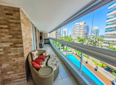 - 4 dormitórios, sendo 2 suítes - Living com dois ambientes - Cozinha tradicional equipada - Banheiro social - Área de serviço - Varanda gourmet com churrasqueira e com fechamento em tela de proteção - Ar-condicionado nos ambientes Diferenciais e Lazer do Condomínio: Clube compartilhado com restaurante, café (2 quadras de tênis, quadra de areia, quadra de bocha, playground) Piscina adulto com deck Solarium com espreguiçadeiras Piscina infantil Piscina coberta Brinquedoteca Salão de Jogos e TV Salão de Festas Home cinema Sauna com Sala de Repouso Academia Quadra de Tênis Quadra recreação Área Verde/Jardim Sanitários Portaria Serviço de praia. À Disponibilidade e Valores dos Imóveis anunciados podem sofrer alterações a qualquer momento, sem aviso prévio.