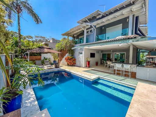 - 5 quartos, sendo 4 suítes - 6 banheiros - Sauna privativa - Ambientes internos integrados e acolhedores - Salas amplas com lareira - Cozinha totalmente equipada com despensa - Área de serviço funcional - Quintal privativo - Espaço gourmet completo - Piscina adulto e infantil - Localizada a poucos passos da praia À Disponibilidade e Valores dos Imóveis anunciados podem sofrer alterações a qualquer momento, sem aviso prévio.