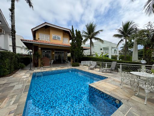- 5 dormitórios, sendo 4 suítes (1 no térreo) - 1 sala íntima no andar superior - Sala três ambientes com dois aparelhos de ar - Lavabo - Cozinha com dispensa e triturador - 1 banheiro social - Lavanderia com máquina de lavar e secar - Piscina com cascata - Área gourmet equipada com churrasqueira - Banheiro externo - Depósito - Todos os quartos com ar-condicionado À Disponibilidade e Valores dos Imóveis anunciados podem sofrer alterações a qualquer momento, sem aviso prévio.