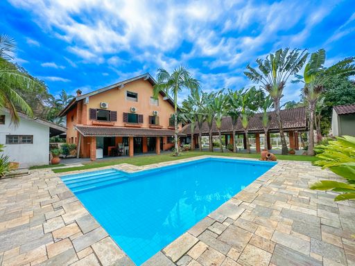 - 5 suítes - Living com dois ambientes - Sala de TV - Cozinha americana - Lavabo - Sala de TV no segundo pavimento - Cozinha externa equipada com churrasqueira - Área verde - Piscina privativa - Banheiro externo - Ambientes climatizados À Disponibilidade e Valores dos Imóveis anunciados podem sofrer alterações a qualquer momento, sem aviso prévio.
