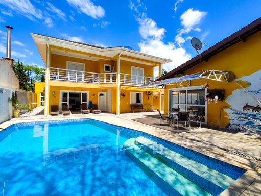 - 6 dormitórios, sendo 1 suíte (Quartos climatizados) - Sala de estar - Sala de jantar - Cozinha completa - 3 Banheiros sociais - Varanda gourmet equipada com churrasqueira - Área verde - Piscina privativa - Banheiro externo - Área e banheiro de serviço À Disponibilidade e Valores dos Imóveis anunciados podem sofrer alterações a qualquer momento, sem aviso prévio.