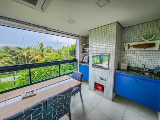 - Varanda gourmet com churrasqueira e fechamento em vidros