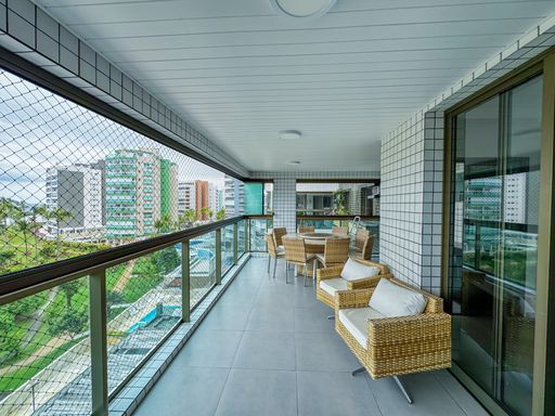 - Varanda gourmet com churrasqueira e fechamento em tela