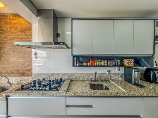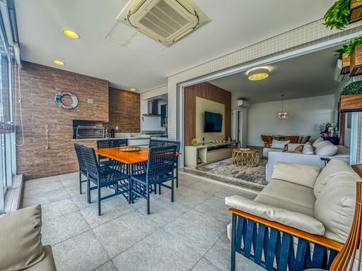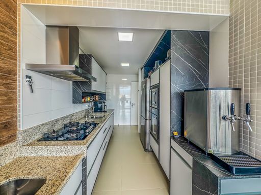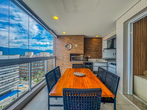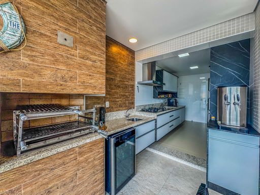 - Varanda gourmet equipada com churrasqueira, chopeira e fechamento em vidros
