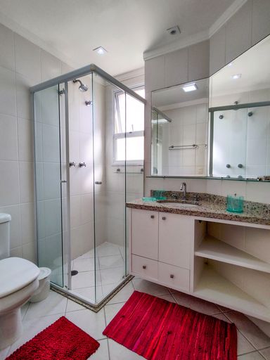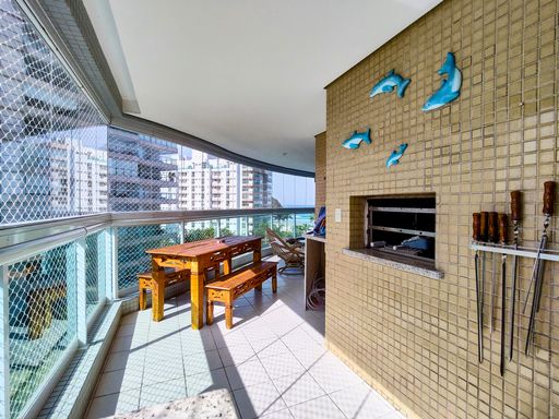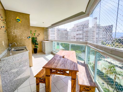- Churrasqueira na varanda com proteção e fechamento em vidro
