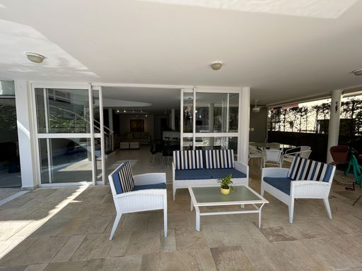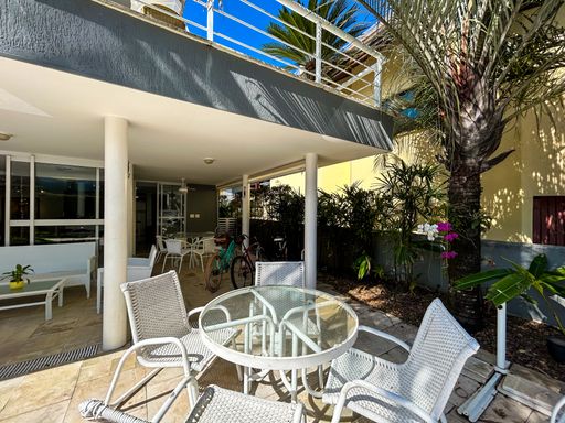 Bar Rapanui na praia e muito espaço com coqueiros, duchas de água doce, espreguiçadeiras, mesas e cadeiras com guarda-sóis para seu conforto e diversão, serviço de praia e guaritas de segurança com controle de acesso para praia x condomínio.