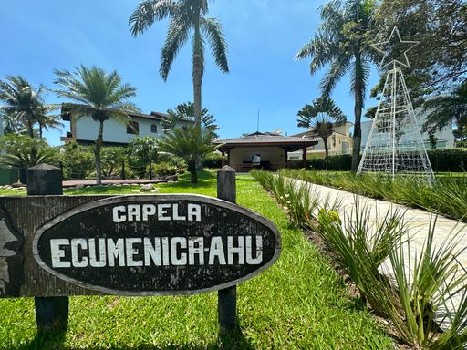 Capela Ecumênica Ahu e lago ornamental.